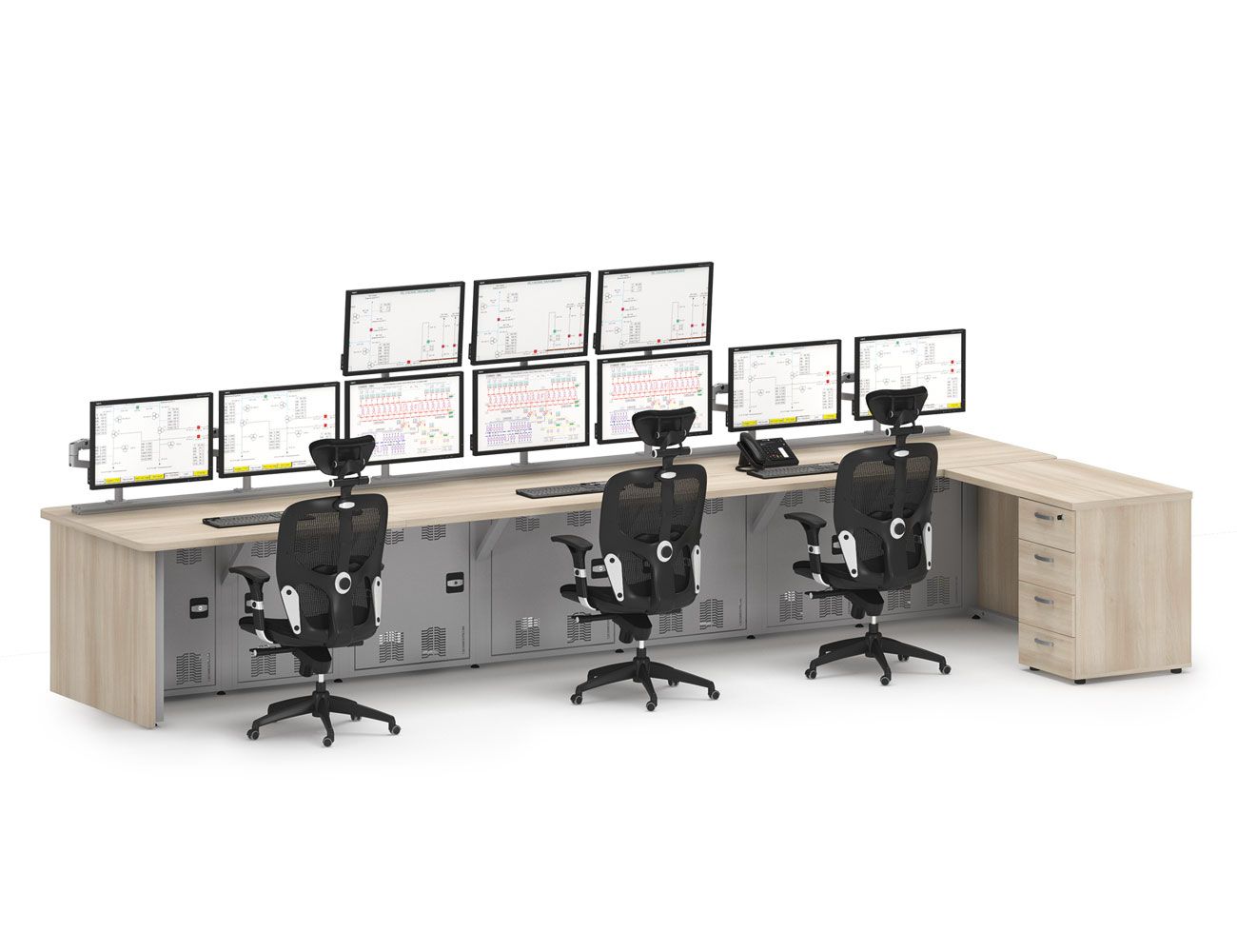 Рабочие места серии ЭТАЛОН разработаны специально для диспетчеров, осуществляющих круглосуточное дежурство, (выполнено в соответствии со стандартами ГОСТ Р ИСО 11064 и ГОСТ 23000-78)