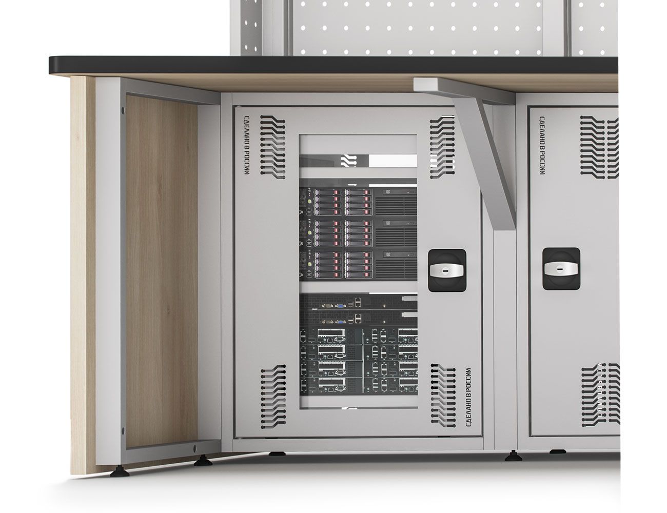 • Пассивная вентиляция и встроенный кабель-менеджмент предусмотрен в каждом модуле с несущей рамной конструкцией (для скрытой проводки коммуникаций и обеспечением к ним быстрого доступа)